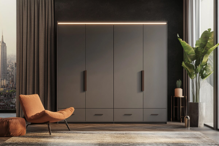Slate Grey Modern Swing Wardrobe Design with Drawers and Long Handles